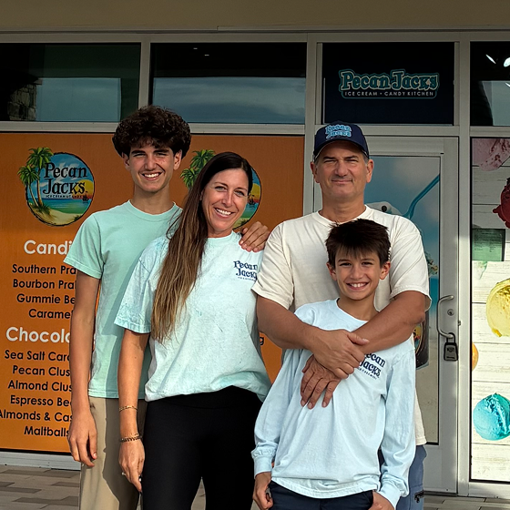 Rosemarie and Milton Tembelis moved to Sarasota with their two sons and quickly fell in love with the easy pace and strong sense of community. That journey led them to become part of the Pecan Jacks family, and they invite you to be part of their story—stop in after the beach, on your way home, or make it a family tradition.